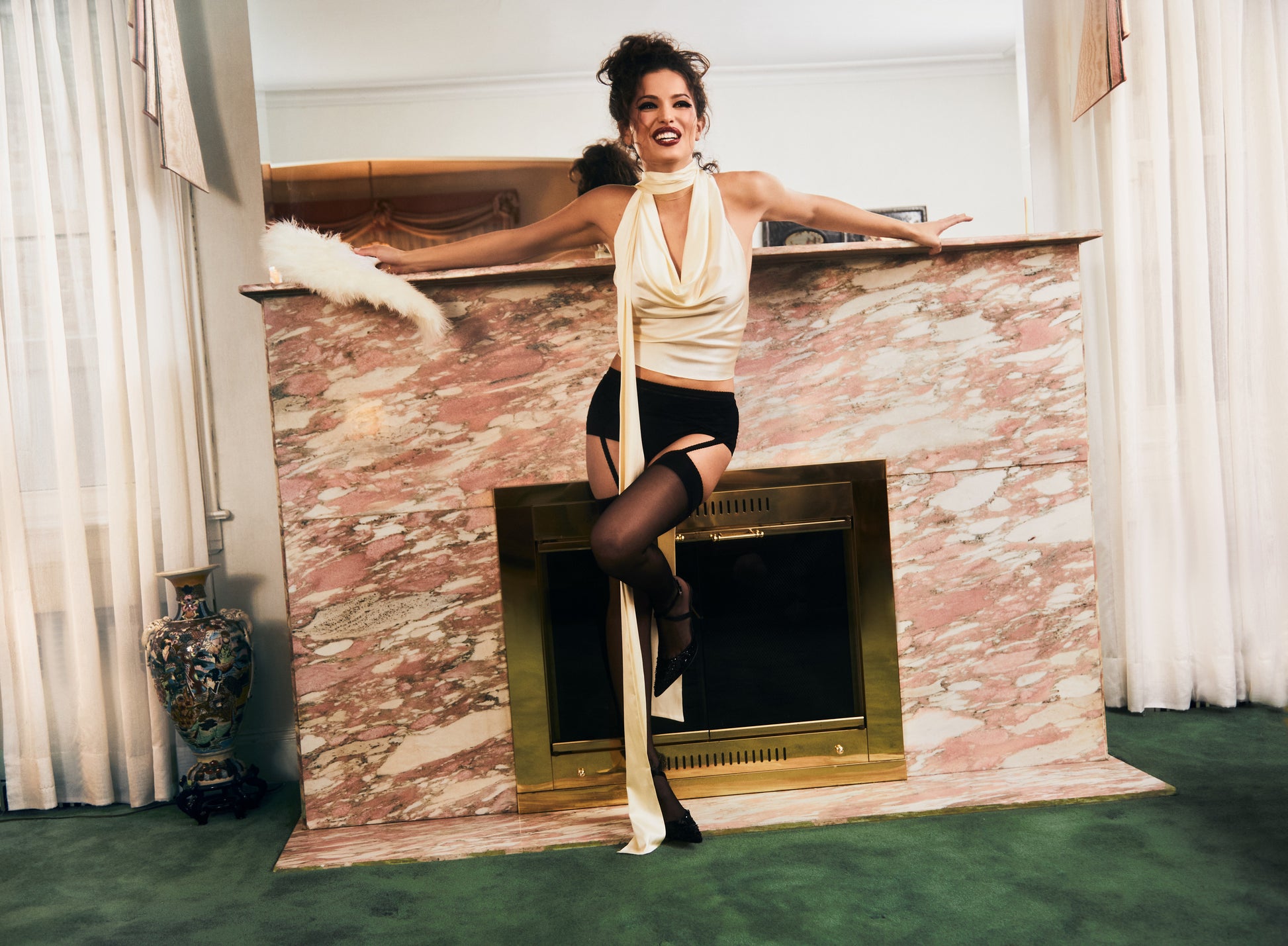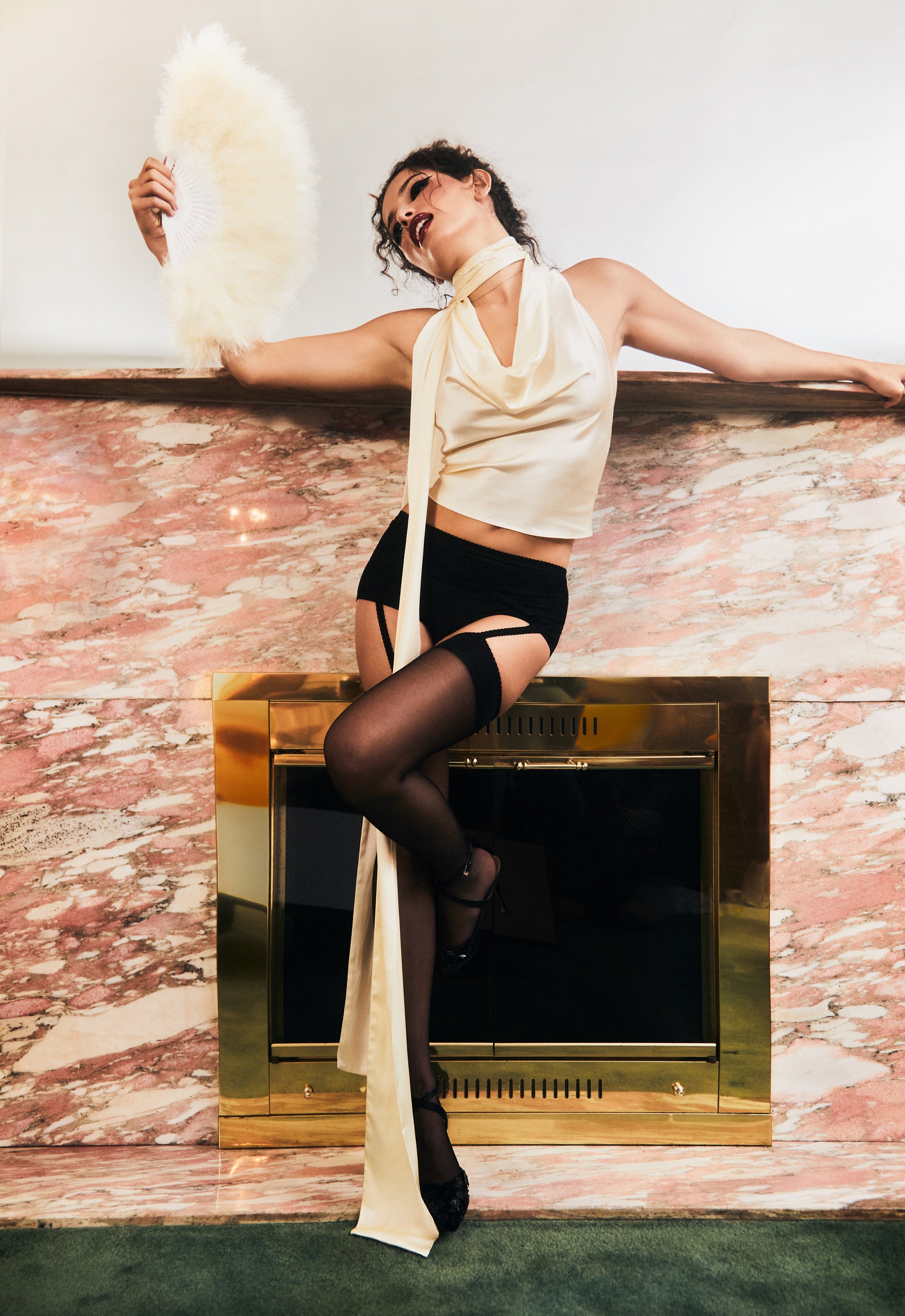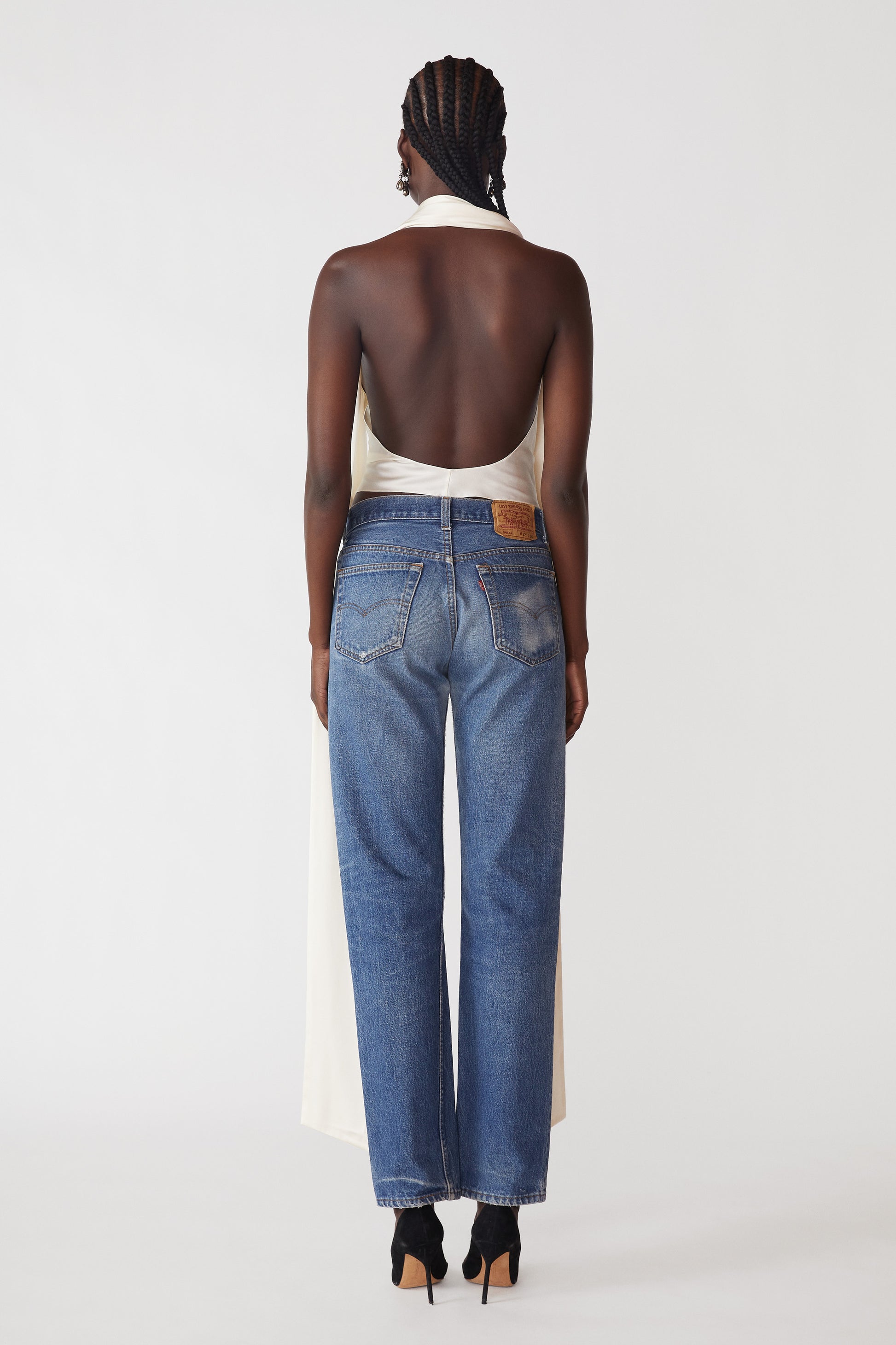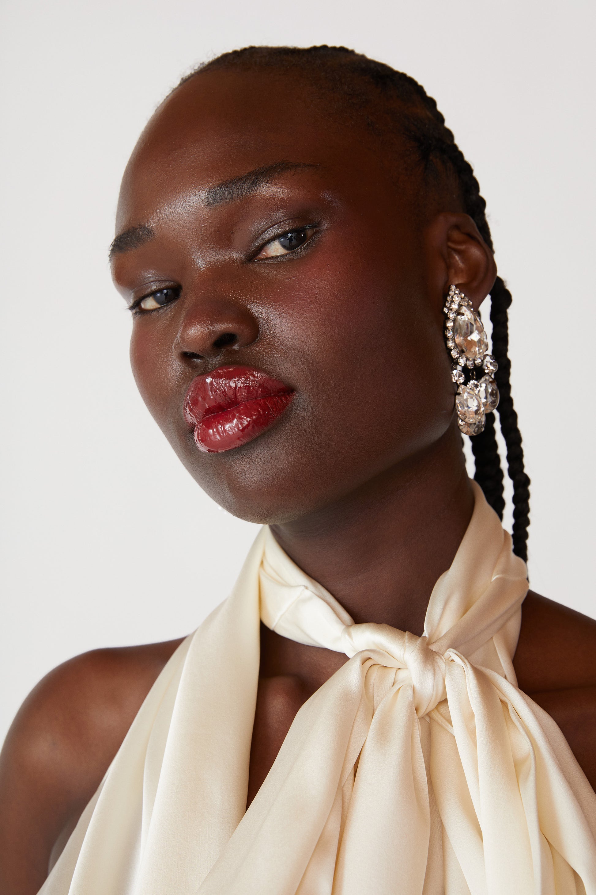 The shoulder-flattering cut and the elegant draping of a deep cowl neckline, this convertible top can be worn in a myriad of ways. Made from sultry silk, it’s the long, oversized bow that drapes your back and brings the drama.