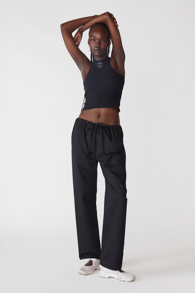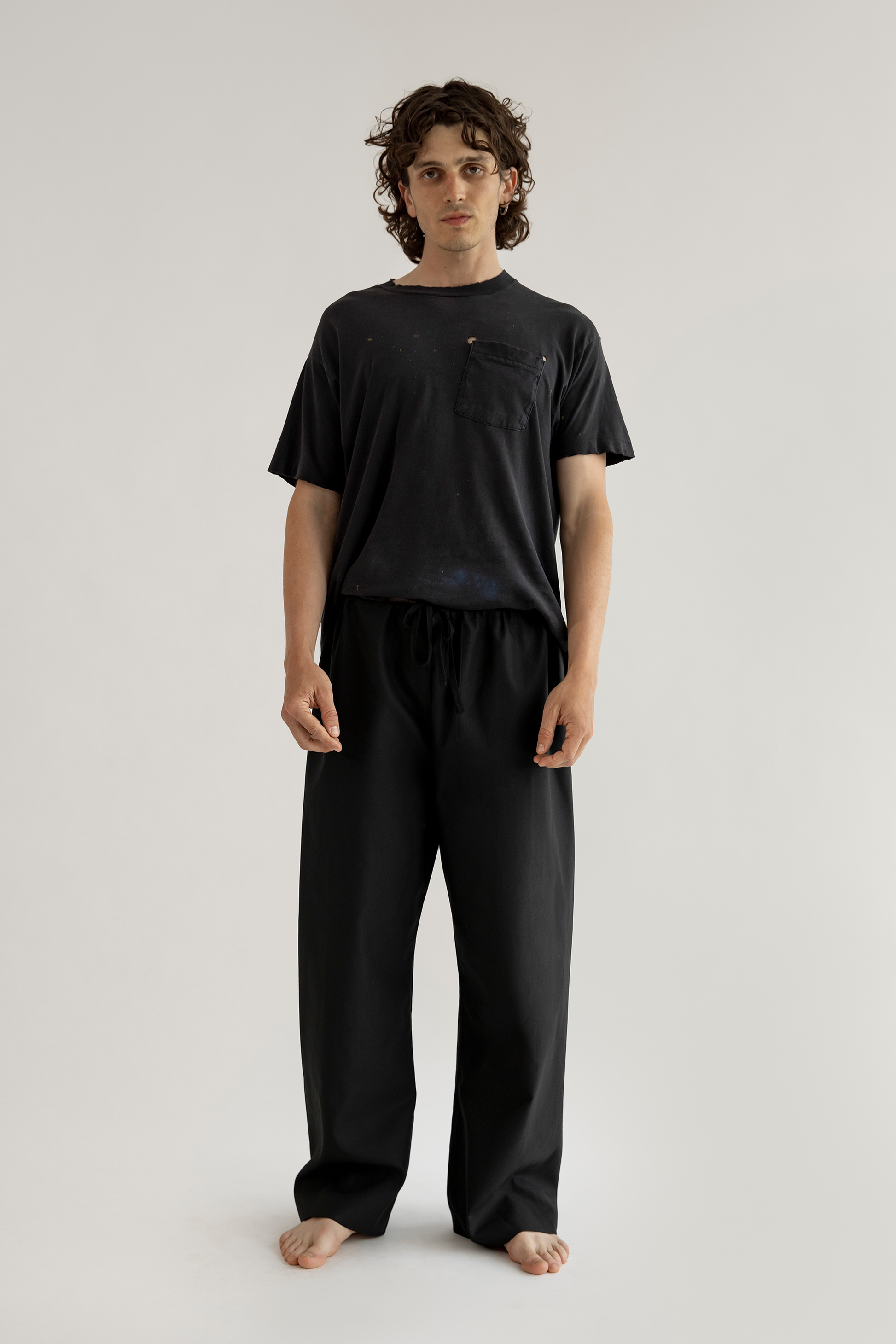 A cozy cotton drawstring pant that can be dressed up or down for every day of the week. Like your boyfriend's pants, this style fits oversized. Size down for a less oversized look. Inspired by vintage men's workwear, this durable fabric is speckled with tonal embroidery and a hidden pocket on the inside.